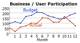 In this example we are tracking the project's achievements against the planned milestones simply as a numeric count.